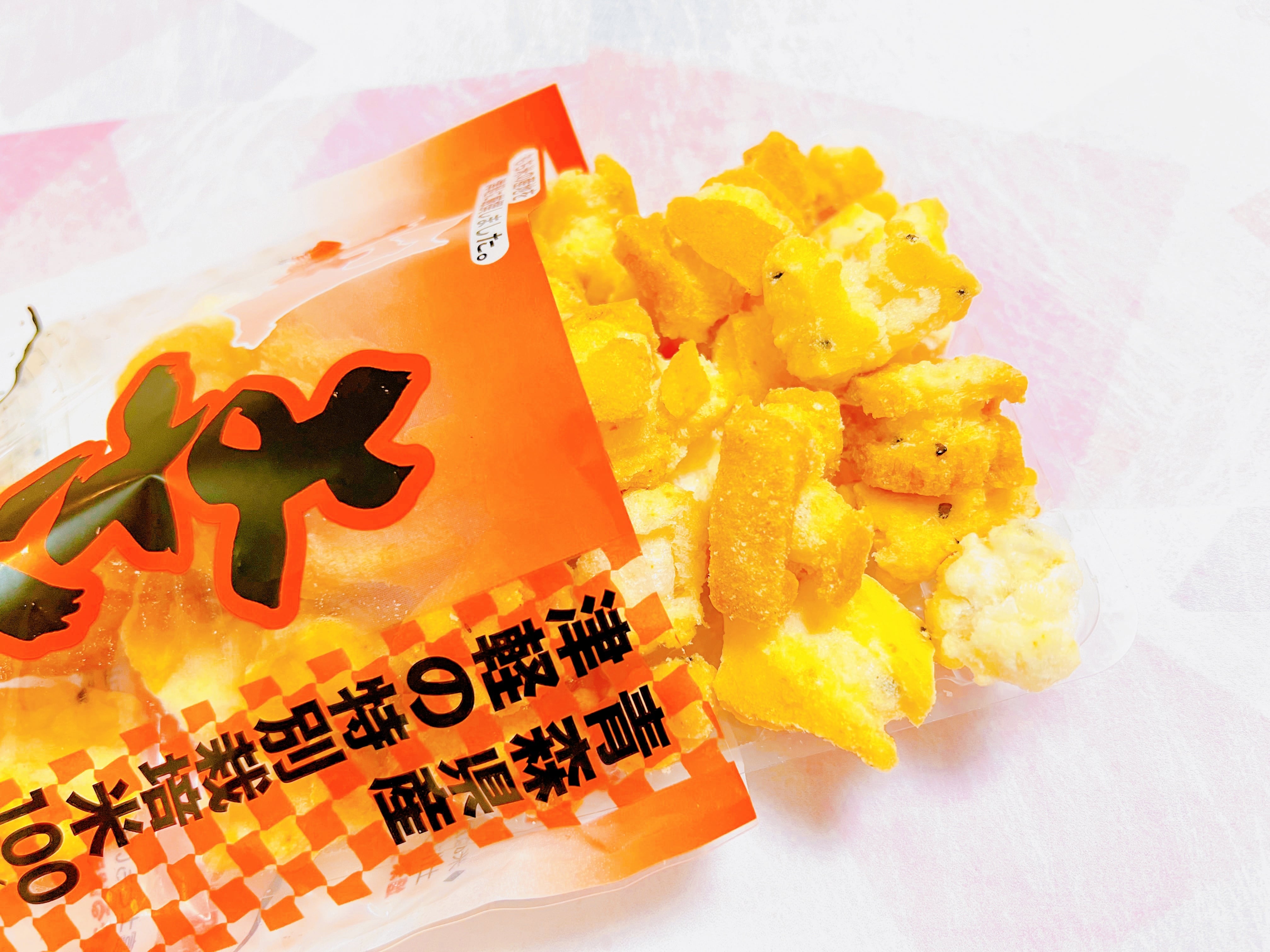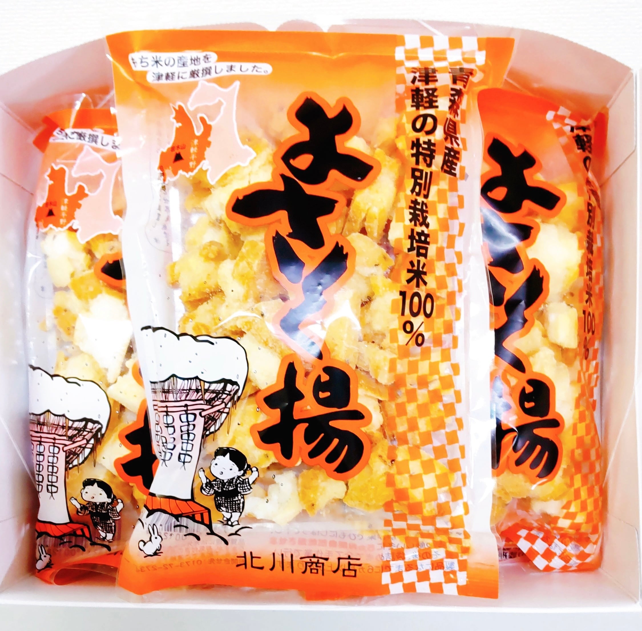 「よさく揚」とは、餅を名刺サイズに切り分け縄や紐で縛り、それを北国ならではの厳しい寒さを利用して干した津軽の郷土菓子「干し餅」を油で揚げて塩をまぶしたものです。